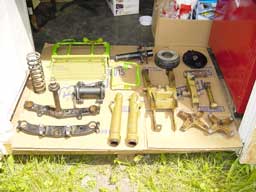 8-06-03 Well here is a pic of the Tecate parts after I got it back from Sumax. I hope you all like. I should have a rolling chassie in a week or two. 12-5-03 I'm just writing to let you know that the Tecate project is still going. The time frame I gave and the money needed were way off. But thats how it goes. Anyway I purchased everything else to finish off the trike. New Maier Fenders, DG Brushed Steel Exhaust with Silencer and new ITP T9 Pro Series rims for the rear with New Titan Fast Trekkers. New Titan Turf Tamer for the front but it looks like a rear so im not sure. I cant seem to find a tire like the original that was on it, with the tread pattern and shape. I also got all new bearings for through out the bike. That all cost a pretty penny for sure. Any ways I just wanted to let ya know that Everything on this bike has been Redone or is New. There are only some Nuts and Bolts that are not show quality. My builder got jammed up for the last few months, but he says we should get started by Jan. 1st We will be putting the whole Fabrication on CD in order to document the Quality and Amount of work done to this Tecate for future Buyers when it is completed. Hope to send in some great photo's soon. |