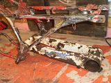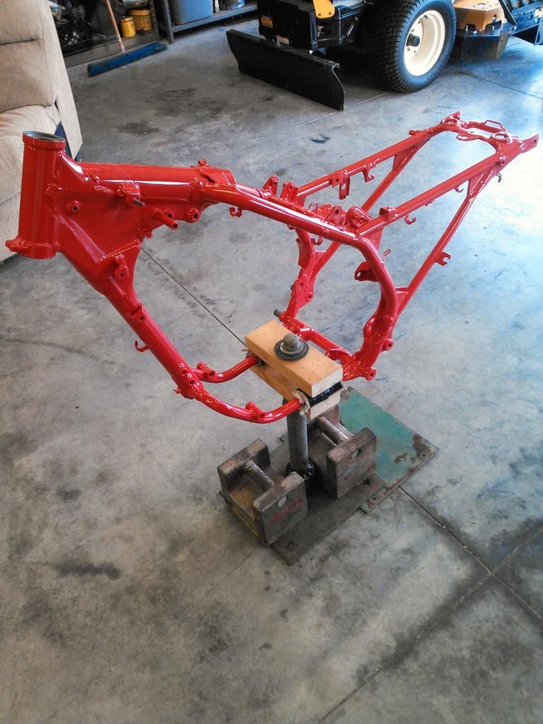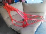 Not much at the moment...this one is taking a good bit of money and time. Bought this bike a while back and decided to start from the frame up. I debated buying a gusset kit, but ended up making my own. Welded all the usual seems also. There was only one spot that had to be repaired by the seat grommet as usual, otherwise this frame was immaculate, from the west coastHad it blasted and powdered along with the westcoast swingarm. Decided to go with the 300ex rear axle and carrier swap. I have a dominator extended axle,lonestar dual row carrier,lonestar locknut. Still searching for tons of other stuff. Gonna have garageboy work over my motor and possibly have some work done to the head. 400 ex carb as well. Oh...came with a bassani aftermarket pipe that will go back on it. Gonna try to keep it vintage looking with fork guards, and a few other goodies. Progress will be slow....unless I hit the lottery