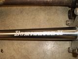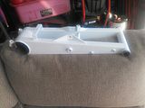 Had it blasted and powdered along with the westcoast swingarm. Decided to go with the 300ex rear axle and carrier swap. I have a dominator extended axle,lonestar dual row carrier,lonestar locknut. Still searching for tons of other stuff. Gonna have garageboy work over my motor and possibly have some work done to the head. 400 ex carb as well. Oh...came with a bassani aftermarket pipe that will go back on it. Gonna try to keep it vintage looking with fork guards, and a few other goodies. Progress will be slow....unless I hit the lottery