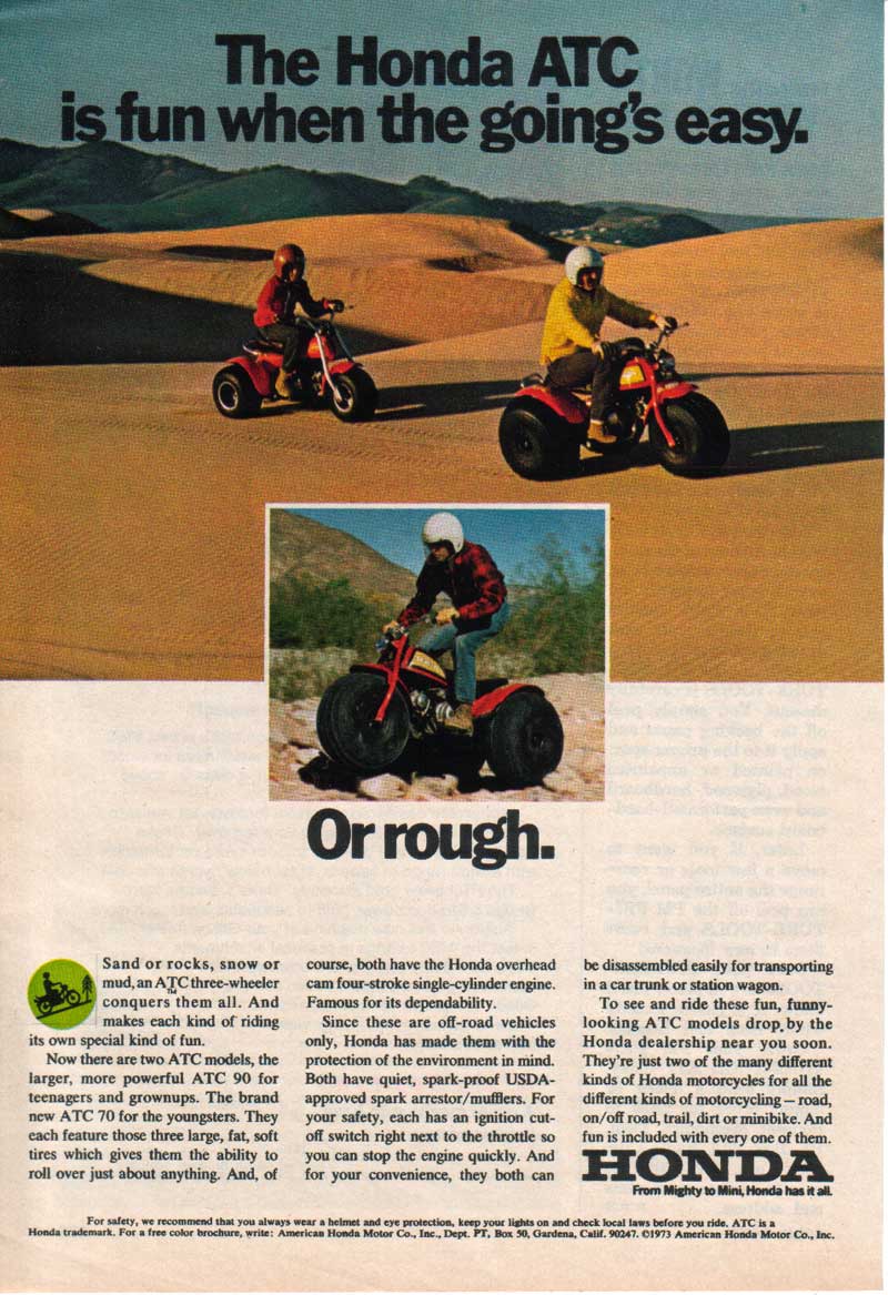 This ad features the ATC 90 and the new for 1973 ATC 70 it ran in the April 1973 Popular Mechanics