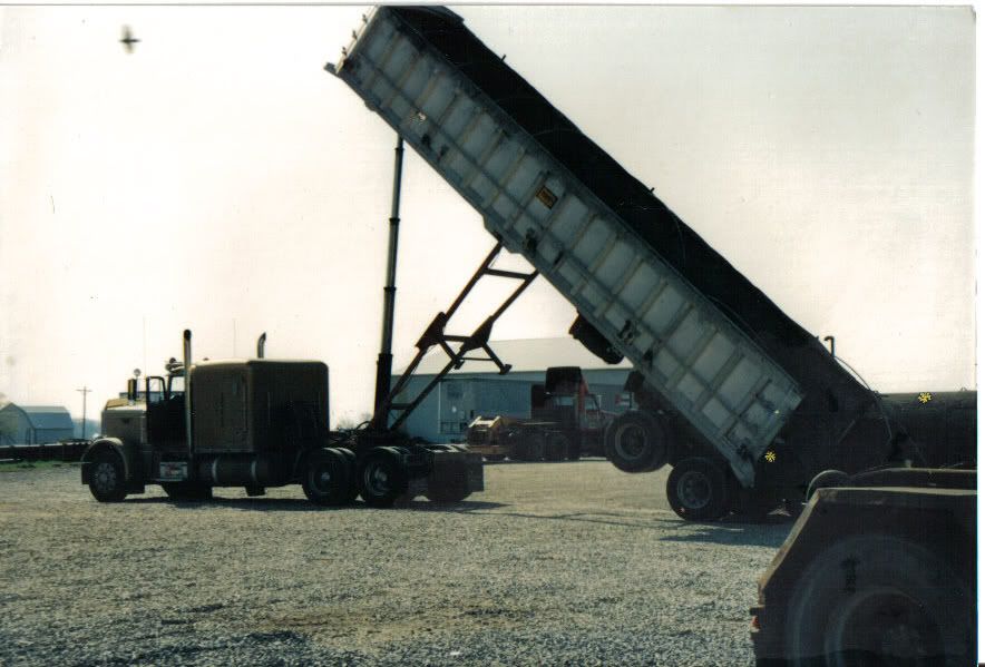 I know there has to be a few truck drivers on here. I drive dump truck during summer and work on semi's in the winter. I thought it might be neat to see some of the trucks and see I have ever worked any of them or just seen them passing by. I drive a 89 pete with a 425 cat backed by a 15 speed tranny. Lets see all the trucks from day cabs, OTR trucks, dump trucks, etc.