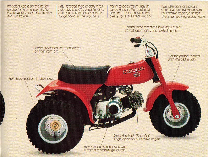 Following Honda's undeniably huge success of the US90, the motorcycle giant set their sights a little lower and introduced the Honda ATC70. Even though in many circles, the adults seem to ride these like trikes the most, the Honda ATC70 was actually the first children's ATV ever produced.