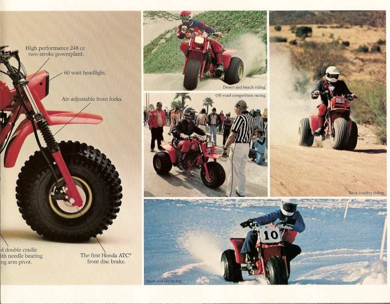 With Honda's success in the early Atc market and a growing Diy racing community, there existed a need for a factory built performance model. Using a fully suspended chassis, and a Cr250r derived power plant, came the 1981 Atc250r. For 1982, HondaATC250R's evolution with some minor updates, the most notable being rear hydraulic disk brakes.