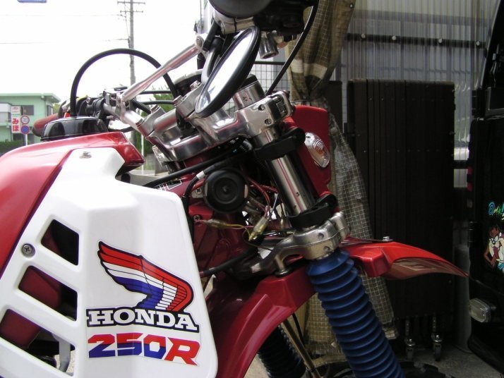 • Potentially would have shared the new keyed ignition feature with the rest of the '87 model line up. Like the 250R, if you look close in the full size view it appears to show a plastic "dash" around the handlebar mounts. High probability this was a place for a keyed ignition.