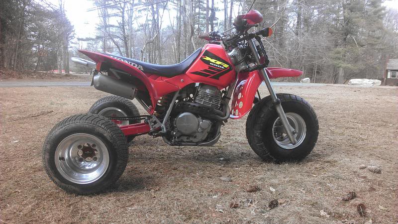 Forum member fabiodriven has one sweet ride. It's an entirely street legal, Honda XR650L bike, that was converted into a three wheeler. Using the heart of the bike, a custom swingarm, a first generation Kawasaki Tecate front end and Honda quad rear fenders, the machine is absolutely awesome. You can read about his modifications to the machine, catch up on the build, hear about dealing with the boys in blue, read ride reports and even check out some videos of the trike in action here.