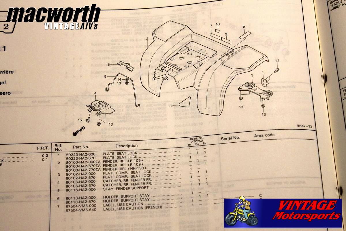 Up until now, his was the only concrete evidence that had matching numbers , until it happened again. Mike Palmgren from Vintage Motorsports located a parts manual that contained many things for the H model 250R including various diagrams, parts numbers, decals, and other things. While other members of the forums also have found these parts manuals, these photos below were the most anyones shown (that we know of).