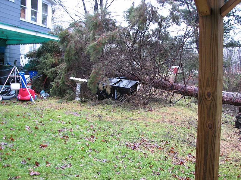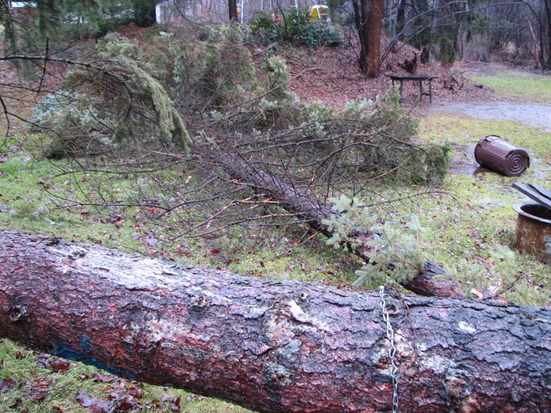 Ouch, at least it didn't land on your head! Damn pines and their weak roots.