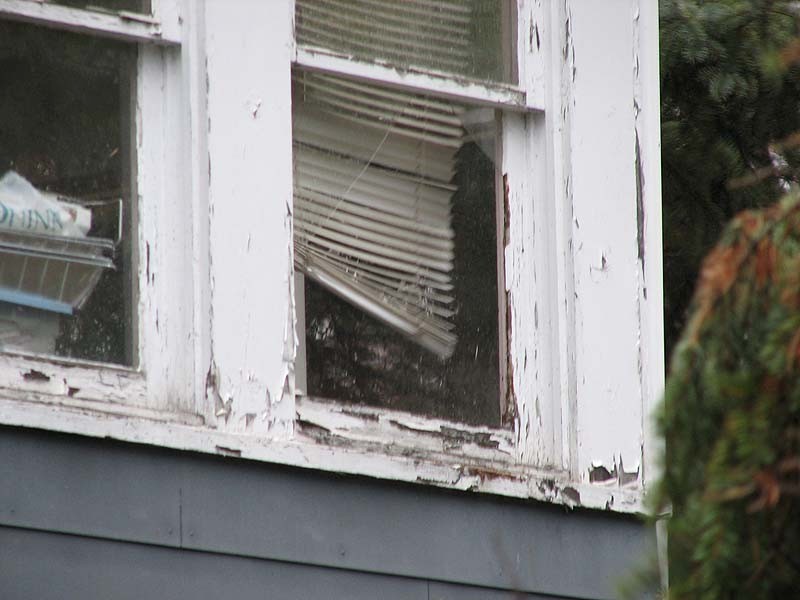 Hit corner of the house and busted the window