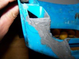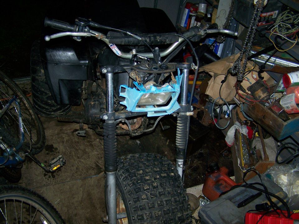I couldn't find a reasonably priced black Headlight shroud so I bought a busted up junker and with a little drilling, shaping, jb weld, and krylon fusion paint I was able to make a acceptable temporary replacement till I can get a deal on a good shroud.