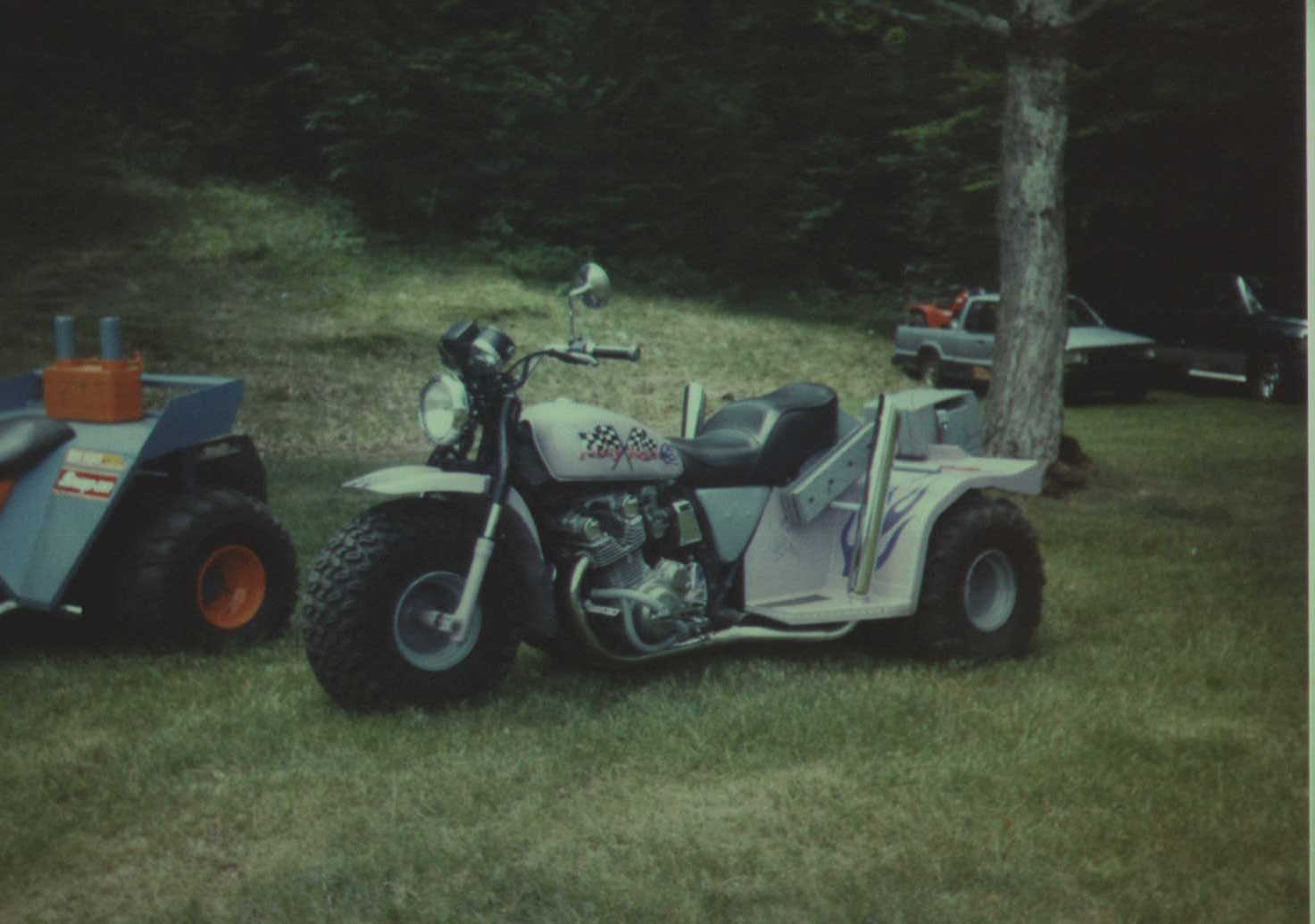 This trike also has ATC90 fenders. I was told that this 3-wheeler was put together when the biggest 3-wheeler you could buy was a honda ATC110!!