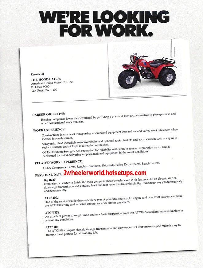 1983 ATC250r 1983 ATC ad "The resume"