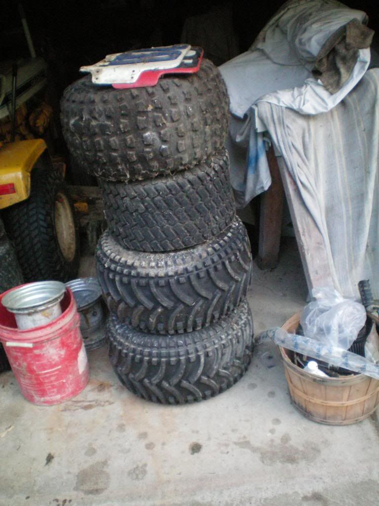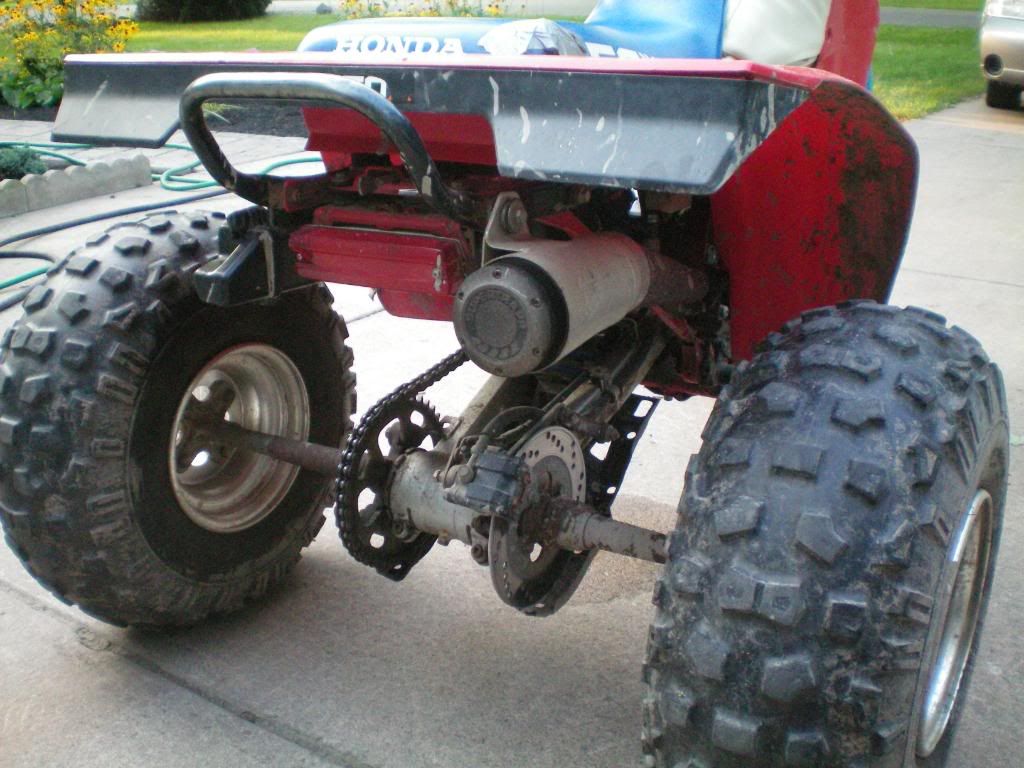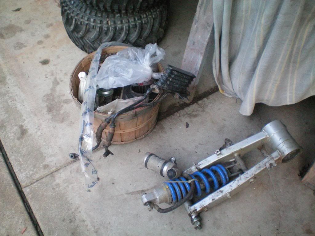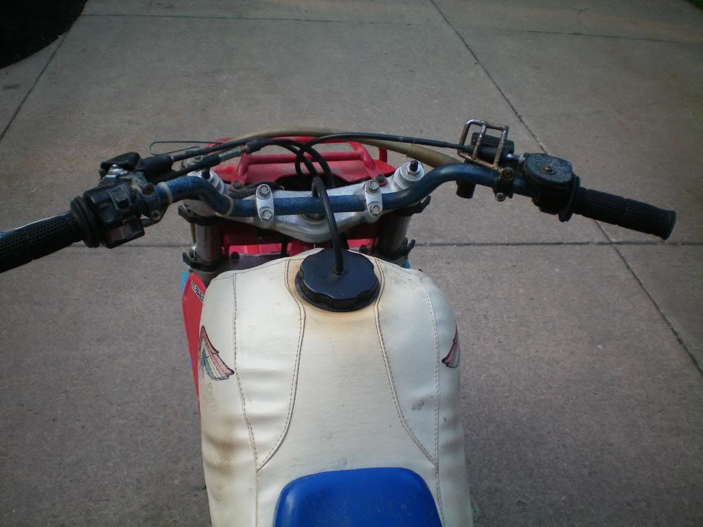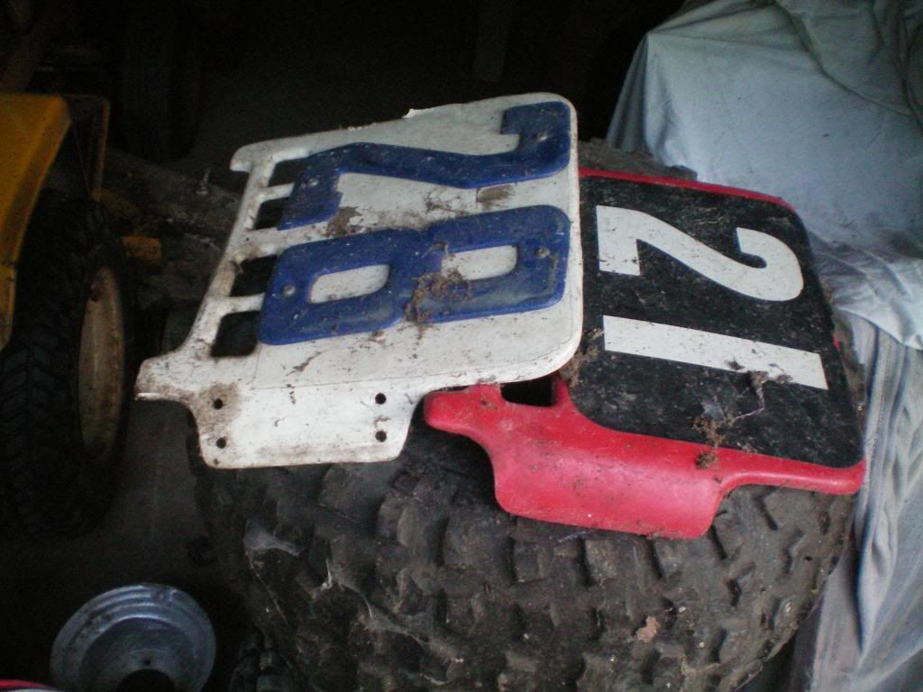 So Jeff (honda250sx) found an add on craigslist the other day for a 350x not far from my house. The 350x being the 3 wheeler I have dreams about, i jumped on it. I noticed the date was from end of august and we are in september and was skeptical but i had nothing to lose. I called the number several times with no luck until I emailed the guy and asked him what was going on. He put up the wrong number and gave me the right one, thus he still hadnt sold it. Called him, went down and looked at it and bought it. He is about 67 years old and the origional owner, bought new. His son used to race it. It has a twist throttle and supertrapp exhaust. Maier superscoops and a CEET tank cover(??). Does anyone know if any of this stuff is rarer?? Like the plates, or the scoops or cover? Came with a basket of extra parts, orig tool kit**, number plates, extra swinger and shock, dead mans switches, tires on rims galore. I have not gone through everything yet. It hadnt run in 4 years and the carb needs cleaned. The pet cock on the tank doesnt work (doesnt turn the fuel off). But it has LOTS of power. On the origional bore still and it is nuts!! Oh yea, and it came with the owners manual and title to. Anyway i will have alot of questions so i hope you guys can help. He wanted 1500 and i talked him down to $900. I think i did ok. Ok here are the pics... THere are alot because i know we like pics...