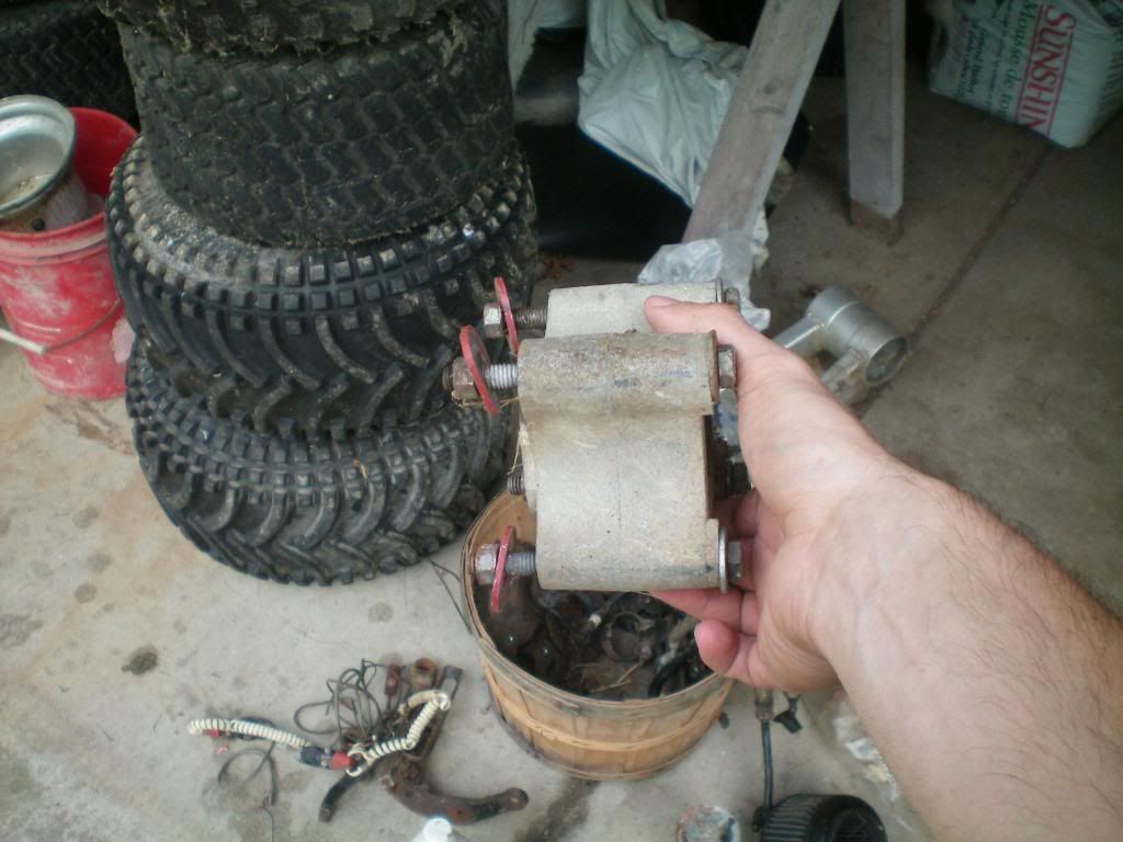 Ok guys i have a carb issue. If you looked at the pics and saw the video i posted yesterday she wouldnt idle and was pissing fuel. I blew out the needle and seat and cleaned out the bottom of the carb and no more fuel leaks..DONE! (still have a shindy rebuilt kit on the way) Now i put it back togeather and she runs but still has the idling problem. It starts on choke and runs fast on choke but as the engine warms and i slowly bring the choke off the idle drops and when i get the choke completely off she dies. She caughs alot to. She will run on half choke but caughs the whole time. I adjusted the mixeture to 2.5 turns as per the manual. Any other ideas. Please watch the newest video i made. Im thinking she is lean Also here are some pics of some wheel spacers i found in the boxes of parts...