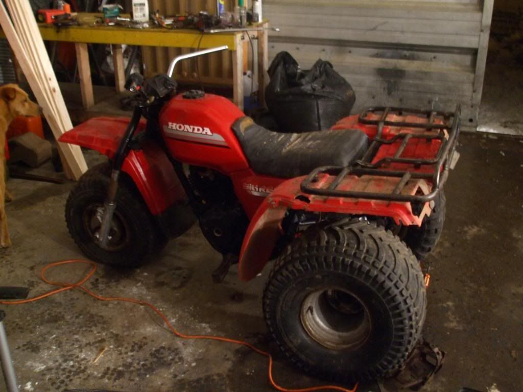 Thought this was project beater big red. Looks nice but I find the reds needs to be beat up a bit to totally enjoy them. Not caring about breaking the allready cracked plastics. Every big red/sx Ive seen has no brakes. Does yours? Hell even electric start is a luxuray item. Looks good.
