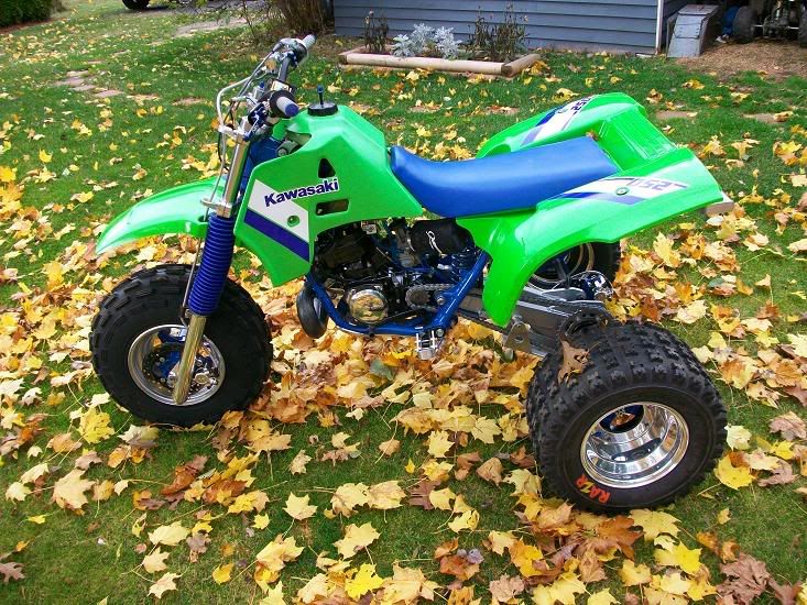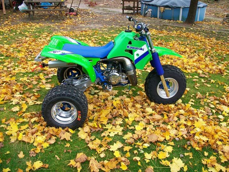 started on 6 kicks, now it starts every 2. i just have to break it in now. its real quite. i think thats because of the fmf silencer. i really don't want to drive it off road! the powerlines by me are all flooded and i know i'll get it covered in mud. but i can't ride it on the road forever.