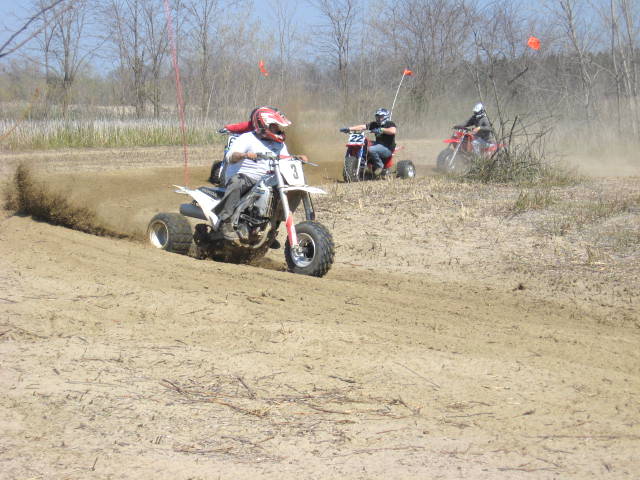 After lunch we headed off to the oval for our first racing event. Our first race was for the ladies and they put on a terrific show and taught the guys how it was done on quads unfortunitely but oh well! Cori placed 1st, then liway 2nd and Shannon 3rd. We then ran a couple of Quad classes to include some of them as well. In the first class Jacob Hall got 1st, Jason Divall got 2nd, and Kevin Shively 3rd. In our second group of quads we had a photo finish with Justin Hill securing the win due to some course issues that Aleck Swain had that cost him the win lol!