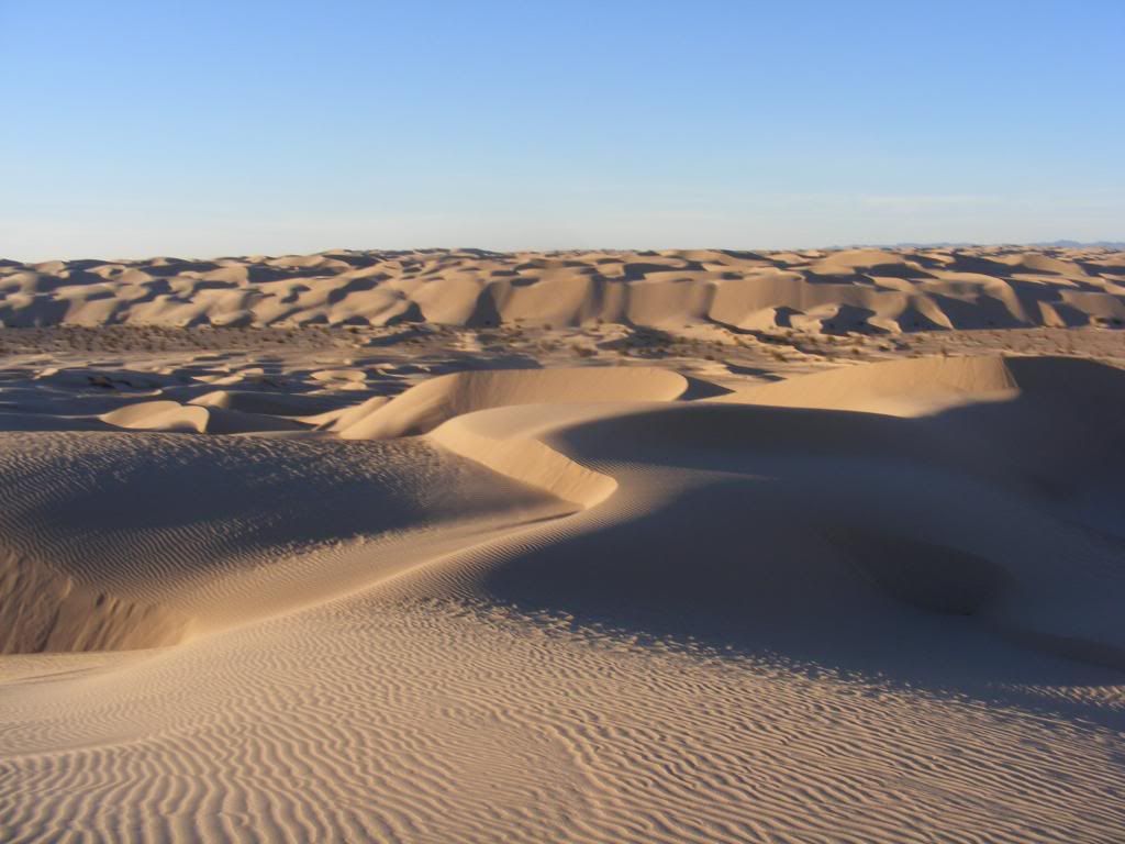 this is a great picture!!! the leading edge of the dune across the flats in the back is at least 300' high.. doesn't look it huh???? but it is!!