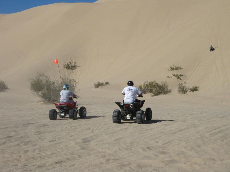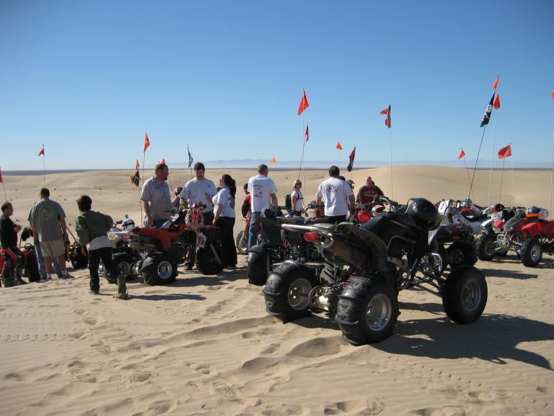 I also wanna say Thank's to Kasey for explaining the way the dune's work with the wind's and how to read the Razor's,whitches eye's and the sand and for giving me a couple great tour's and tell your wife thanks for our campfire talk on raising kid's.Also wanna say Thanks too Minty for taking us on one of the most awesome duner ride's I have ever been on,that will be implanted in my mind for the rest of my life.ATC Eric you get a big Thank You for everything you did for me also from driving me around,getting my luggage in Yuma,checking out the ship's and Submarine's and much more,Thanks Budd.Gary you Da man when it come's to getting a good laugh and starting my machine since I was stuck in my shoe's with no boot's,(Long Story LOL).Debbie get's a huge Thank You for all the cooking you did including the great Real Southwest taco dinner that you made for all of us. Also a Big Thank's to Jason Hall for letting me rip it up on the aluminum 450 which was the bomb on Patton's Hill and every thing else you did for me.Also a big Thanks to 3 razor's brother(sorry but I can't remember your name) for letting me take my 1st ride on a fully suspended 185S.Thank you to Mr Clean for the great conversation's we had and the other stuff,including offering up the cleanest 250R I have ever seen to ride.Also wanna say Thanks to Shelly and Sandy for helping me find my video camera and my phone when I misplaced them 100 time's.Also wanna say thanks to my roomie's for the week which were ATC Tim & Shelly ,Billy,The Mosh's,and the Sprock's for putting up with me also and the list goes on & on with thank you's.Last and deffinatly not least I wanna say Thanks to my brother Joedirt for letting me use one of the nicest 350X's that I have ever ridden,and for relieving me of alot of stress with not having to set up my own machine since I was in a pinch with time,your machine ran flawless and is actually still in one piece,LMAO,and Thank's to ATC Sam and Jake for the use of the Paddle's and Fender's.Thanks to everyone for a Great time ,a time that I will never forget for sure !!!