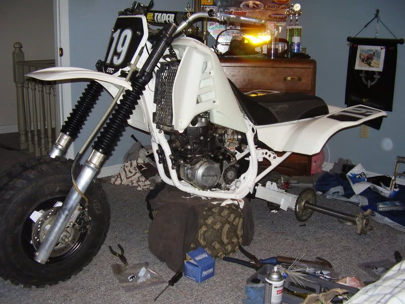The ATC we took the rear tires off and the plastic and brought it thru the front door, very carefully. The TRX was built piece by piece in the house, all NOS, still looking for a LRD Attitude frame for it.