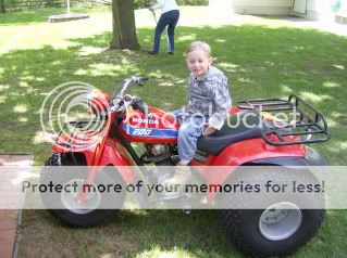 I found a guy local to me that asked if I was interested in purchasing his three wheeler, so I decided to go look at it, he lives next door to the guy that i got my 225dx from. I think I got a good deal, it's a 1982 Honda 200, it's probably the cleanest one I've seen, all the tires are factory, stickers, cables, it even has the plastic on the brake levers still in tact. I was sitting in a heated work shop for God knows how long, covered and dry of gas, I paid $400.00 for it. It came with Hondaline front and rear racks and a hitch. I took it home, looked it over and checked the oil, checked the tank (no rust) put gas in it and on the third pull it fored right up. I'll post pictures tomorrow, I guess my question is did I pay too much, or is it a good deal? I was actually looking for a 200x but I figured on the condition I couldn't pass it up.