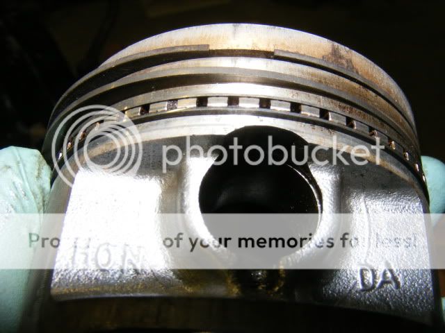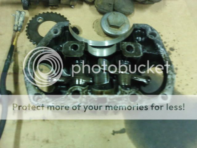 I went the next day and got a compression tester that fit and was getting 50-60psi. I had already downloaded the manual here and 60psi isn't enough. Still hoping I'd get lucking and find something easier to fix, I checked the valves, cam and timing. Everything seemed to be in order. A friend suggested that I put some oil in the cylinder and re-try the compression test. If it increases the pressure the definably rings. I did and it did, up to 125psi and tear down it was. Unlike my KX's, I couldn't get the head off with the engine is. If there is a way and I just didn't figure it out, LMK. Everything came apart good, I followed directions from the manual (this is the first time I've ever rebuilt and engine myself, at least one with valves) and I don't want to mess anything up. I've been around allot of engines being build but watching and doing is a big difference. Everything looked good, some wear in the cam, rockers and where the cam rides in the head but the piston and rings were done. Here's the pics of the engine stuff.