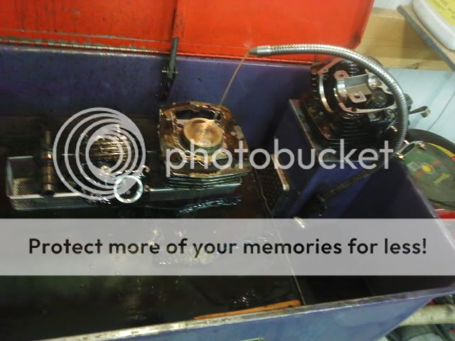 I took it everything to the machine shop to have everything checked. The cylinder cleaned up at .25mm over so I got a first bore standard compression piston kit and dropped it off today to have the piston the wall clearance and final hone. With that out of the way I was back home this weekend and ready to start the rest of tear down and start powder coating.
