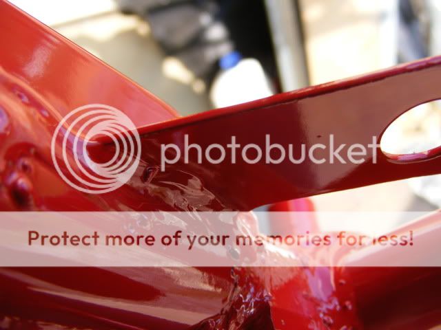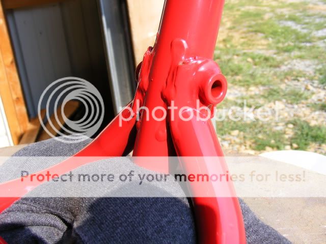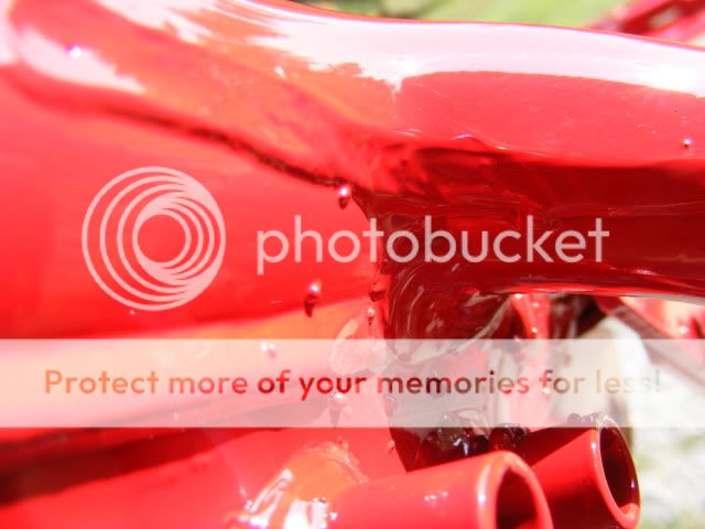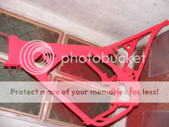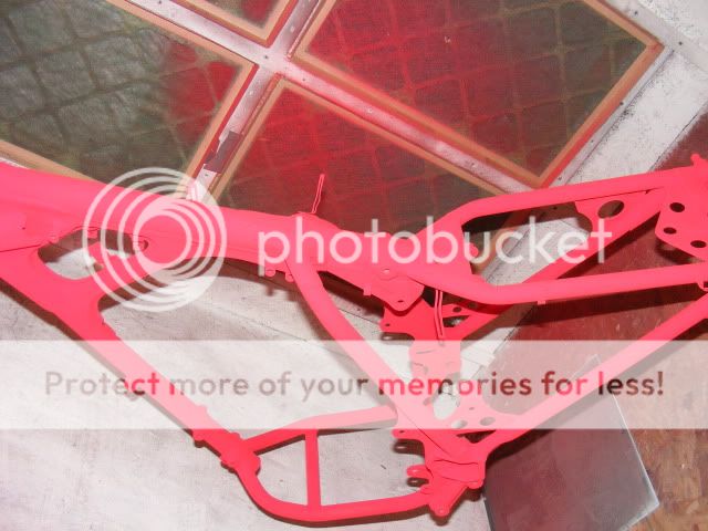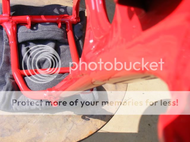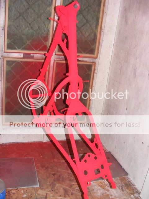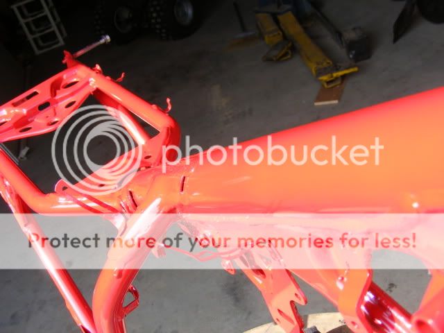 here are the pictures of the cured frame. Sorry about the way the pictures glare. This stuff is pretty shinny and I'm just not much of a photographer. The color isn't a match for Honda red, but I plan on covering all that up with mud, lol.