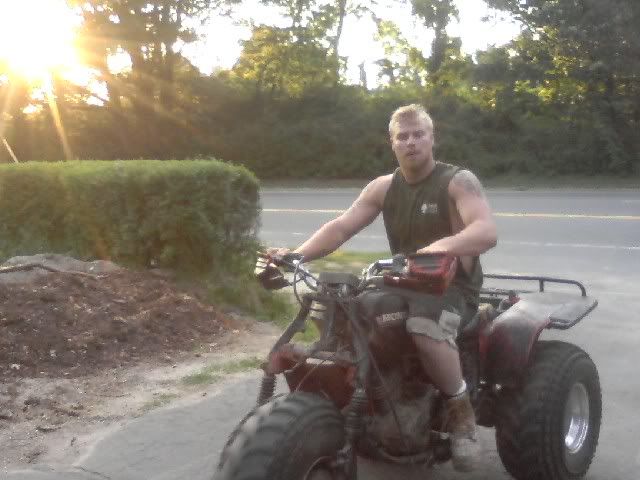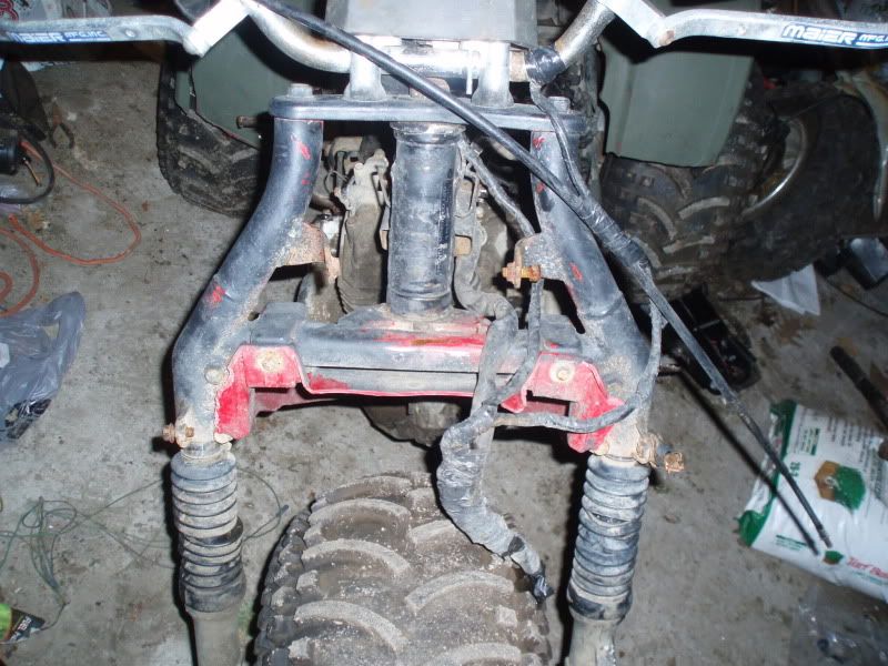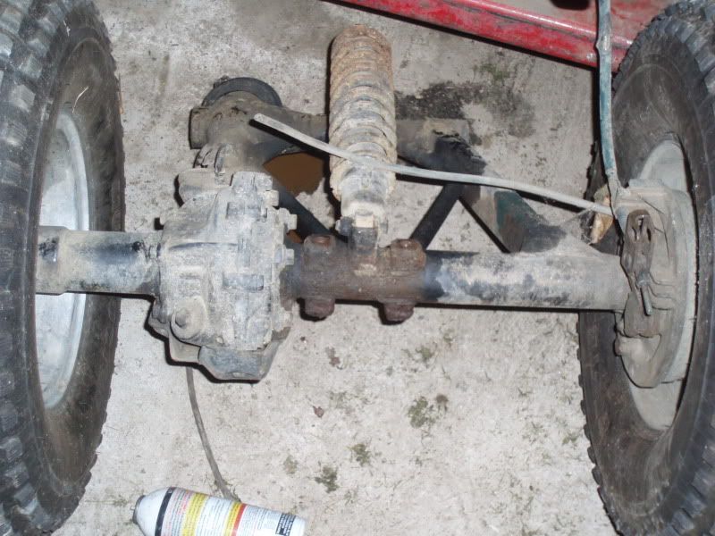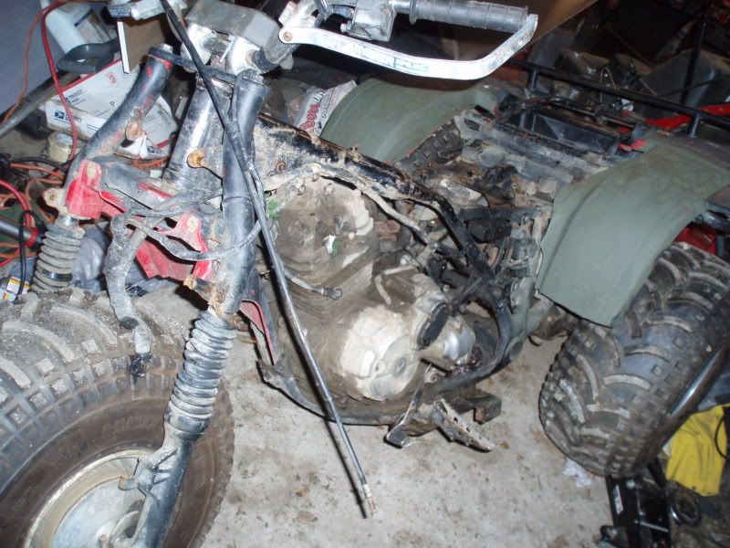 So, there's still a lot to do, but the rear brakes, 300cc engine, wheels and tires (have some sick mud and snow tires) and frame should be all set soon. I was thinking a gloss black automotive paint for the tank and frame but I do sort of like the primer black that's on there now.