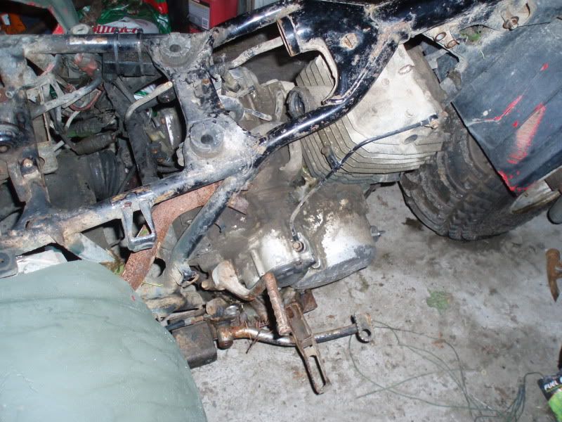 Stripped EVERYTHING down. Engine/rear end/front end off, left just a bare frame and rear rack.