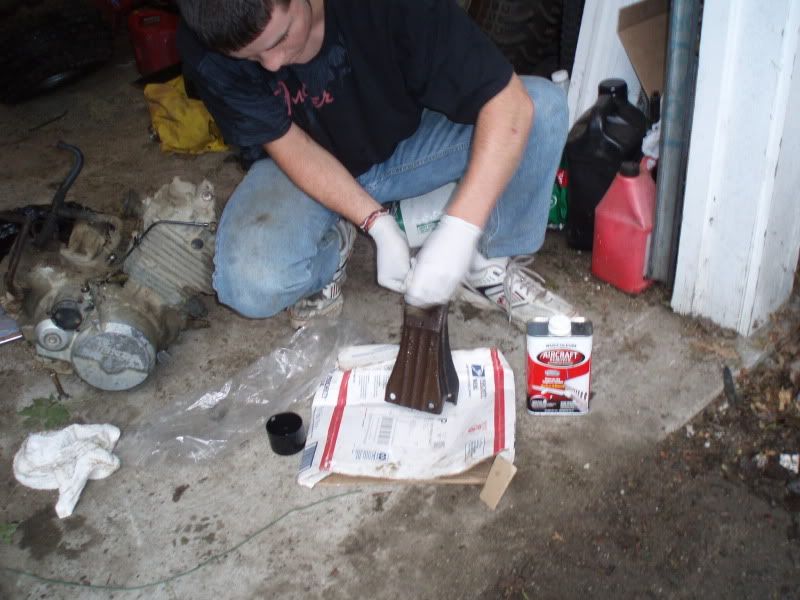 For a small task, we decided to clean up the hitch before putting in on my SX. This is my cousin applying aircraft stripper and then primer from a spray can. I see the runs, will be fixed before calling the job done.