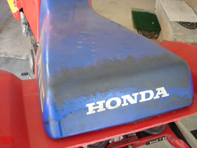 So for the summer my bike was in storage. went awhile without even seeing it. put the bike in my shed standing up because there isnt much room for anything in my shed and the bike was taking up a majority of that space. anyway within those months i had no contact with my baby a rubber gasket on my petcock seemed to have exploded somehow and all the gas began to run down the frame and was collected by the spongy seat.... theres no emotocon that could express how angry i was when i saw this.