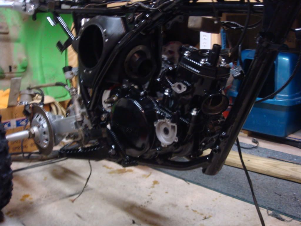 I've been silent on the site only because I've been spending all my free time building.... Built the motor today complete and put it in the fram in just under 7 hours... I don't know if that is short or long on time but it's what it took... Need to work on getting the Bassani pipe to fit as it hits the CDI??? Brakes are all set front and rear Should only be another couple of days![]()