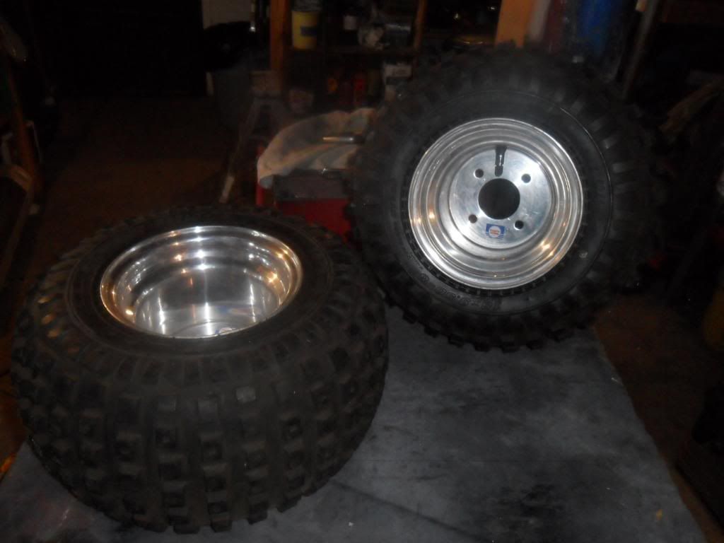 Going to give ice racing a try this year. I got these new Duro 18x9.50x8 Tires and wheels for free and a bag of at least 1000 very slightly used 1 inch long 1/4 inch head Kold Kutters for 25 dollars American.