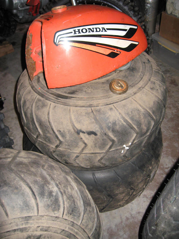 Other than that, two of the spare rear tires came from the US a long time ago, and one tire with a portion of the axle still attached came from a junkyard...his uncle found another machine going for scrap and cutoff the useable tire...yes...he cut through the axle to get the tire off...solid steel.