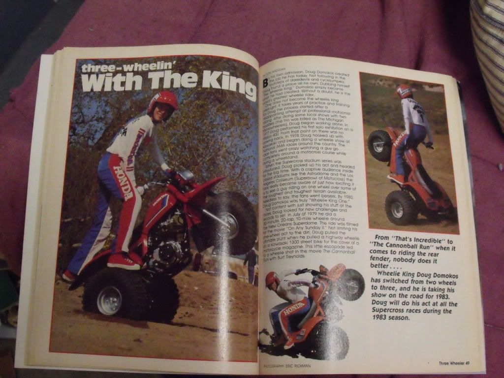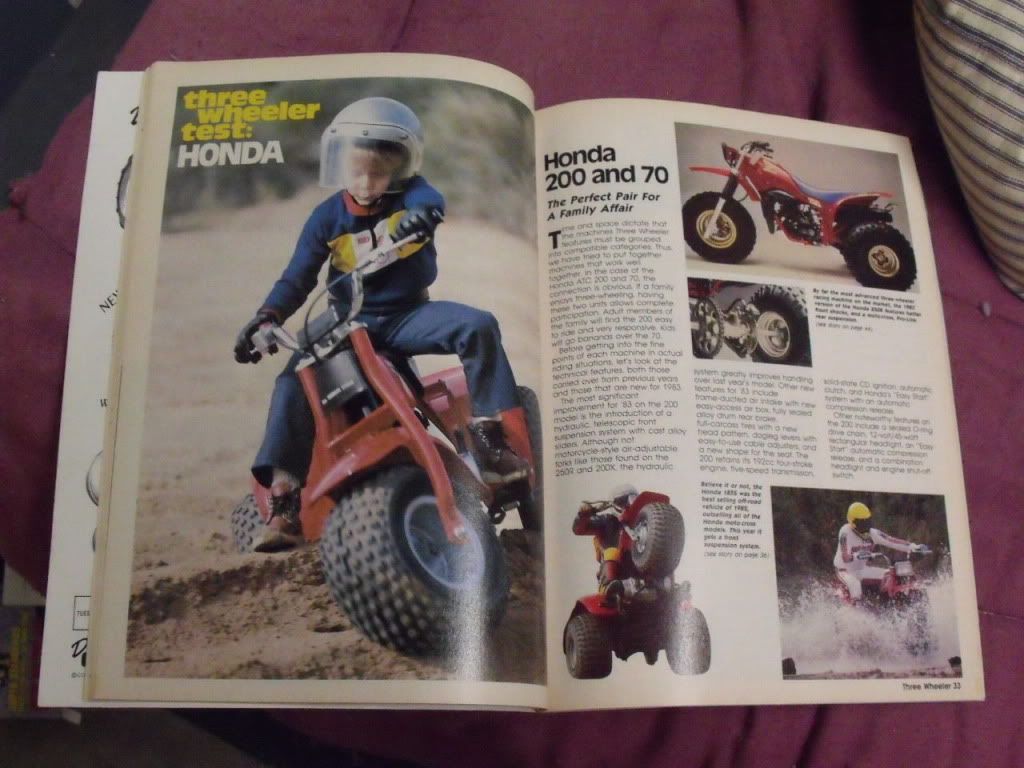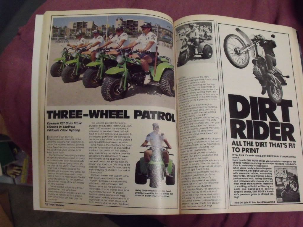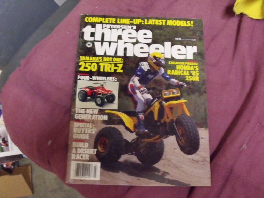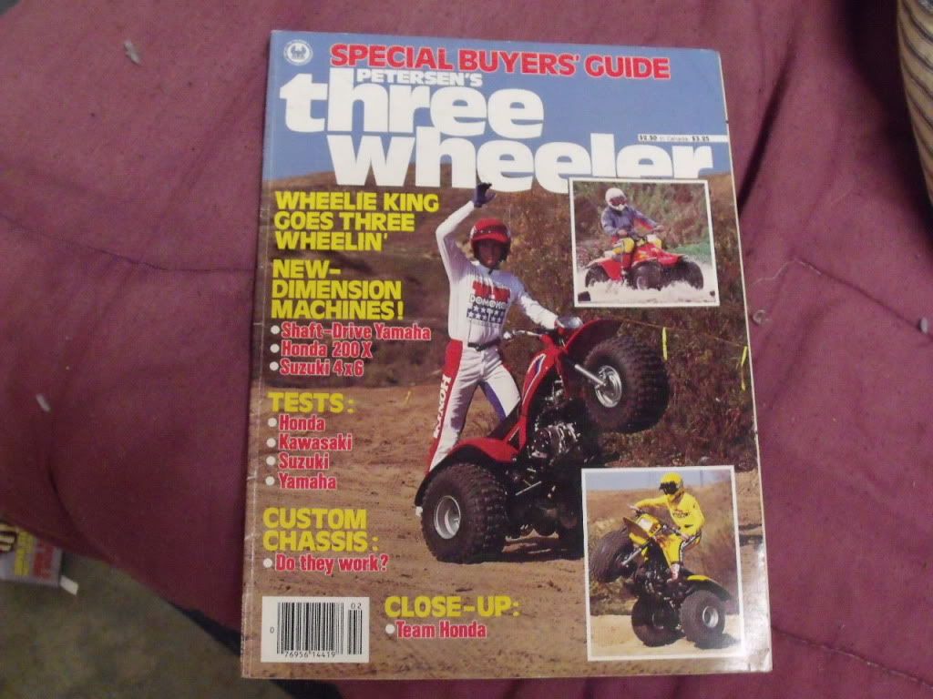 I have a lot of 1980's atv magazines , mostly Dirtwheels, 3&4 wheel action and 3 Wheeling. These are oddballs- Petersens three wheeler, not to be confused with three wheeling. check it out...the decals are some old Rocky stickers from the early 80's too