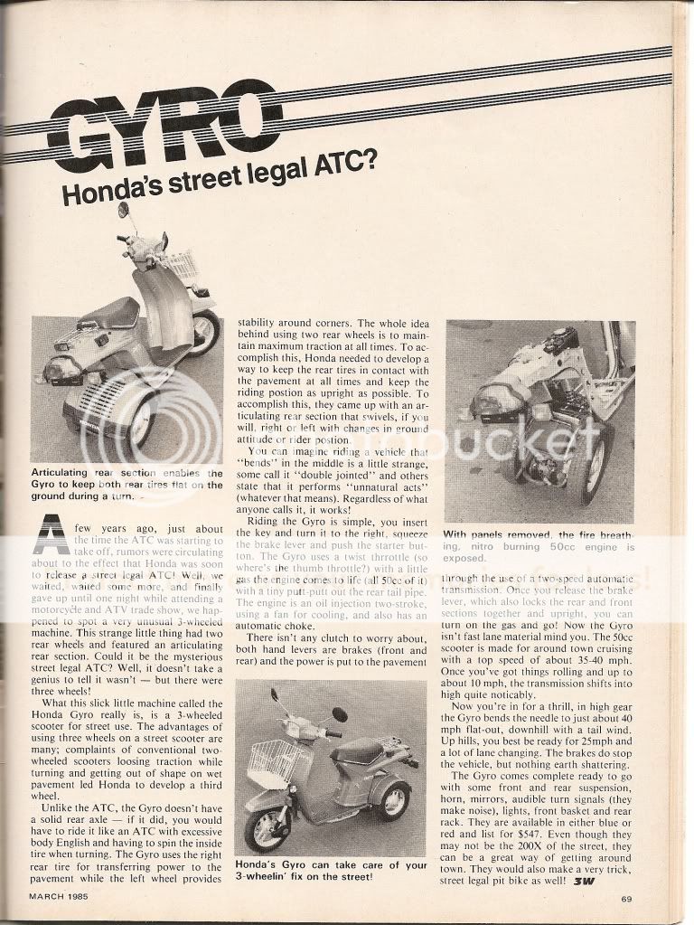 Don't mean to hijack the thread, but here is an article about the Gyro from 3Wheeling Magazine of March 1985