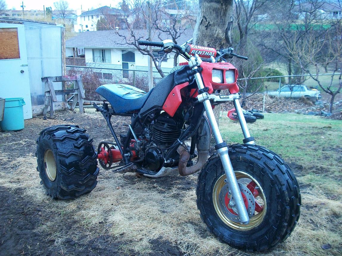 i got a tube for my front 350x tire so thats not on there anymore the dirt bike tire kicks ass on snow sand and ice but slides on dirt and grass