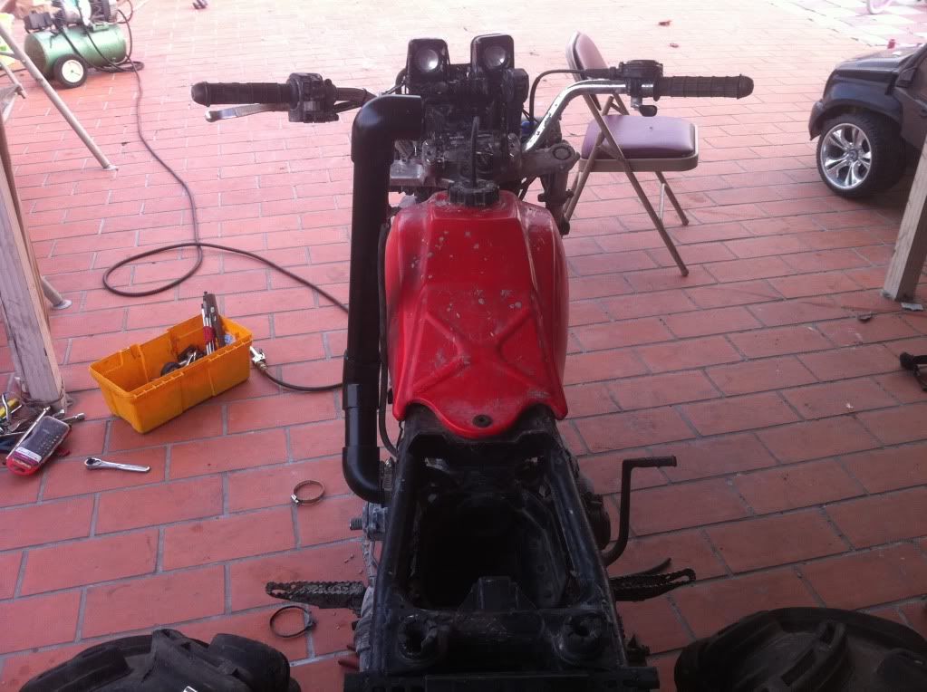 So i had a shop vac hose for a snorkle not that long ago becuz i didnt have the time to make a good one but this week i made one and i love the way it works. also i did a body lift on my bike, the lift was an old 250sx frame i had sitting in the back that was rusted thru on the lower half and i cut the top half and made the lift and its helped ALOT.