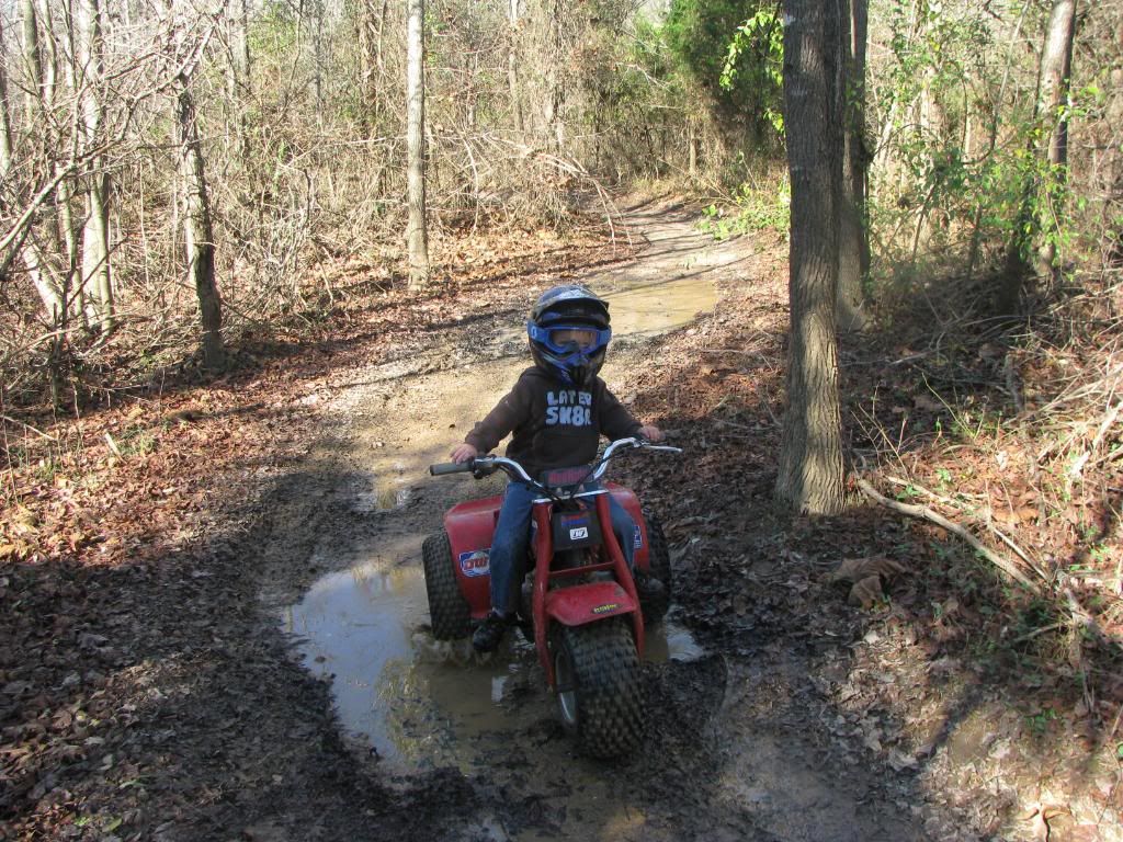 My son turned 5 years old yesterday and we went riding at turkey bay. He done so well riding and never complained. He went through every mud puddle he came to. He got stuck one time and got out with a little help from dada. It was a great day.![]()