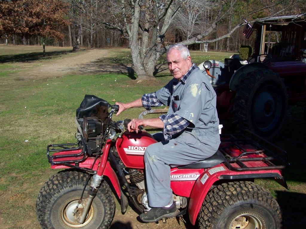 here is my grandfather with his 1985 Honda BigRed 250es that he purchased brand new from Milams Honda-Kwasaki in Pine Bluff, Ar. he still has all the original paper work with the trike. the carb is the only thing that has ever been touched on it. it has had the air filter replaced twice, second time was because of rats. it has had regular oil changes and it is still going strong. it currently has a 250sx carb on it and the bigred carb is on my 250sx. keep in mind the atc is not running in the pic, i just told him to sit on the wheeler so i could get a pic of him.