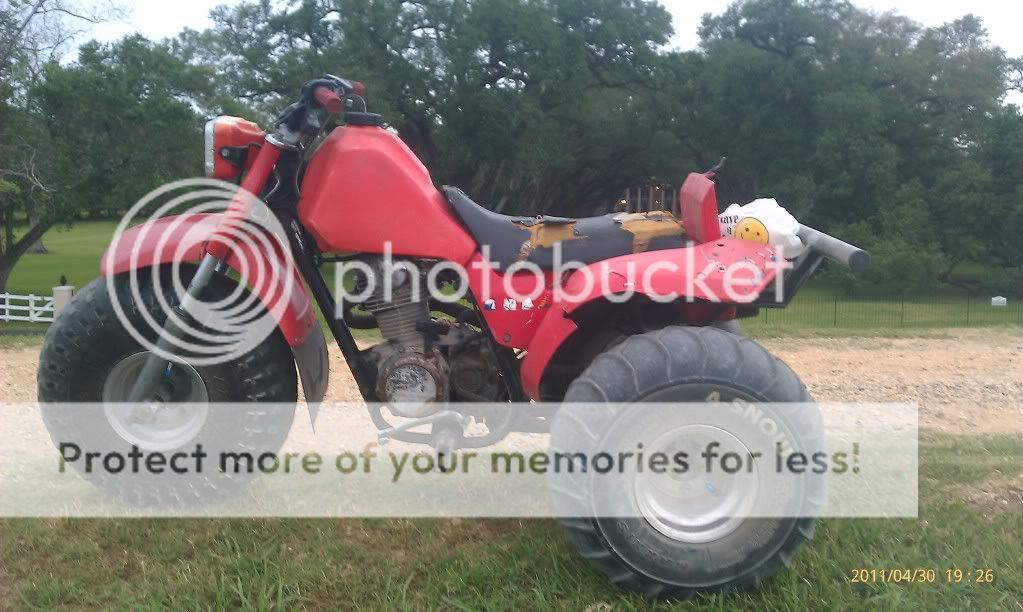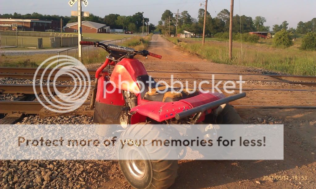 I currently run an 81 ATC 200s with a 67mm piston 12:1(110 octane race fuel), WEB racing Cam, port and polish, bigger carb. The trike was stripped down to nothing and painted the frame and mounted a LTR 450 rear fender on it and seat. The gas tank was replaced with one from a xr70 and has the fender flares on it as well. i custom fabbed a 400ex sprocket mount so i can change them out when nessecery.