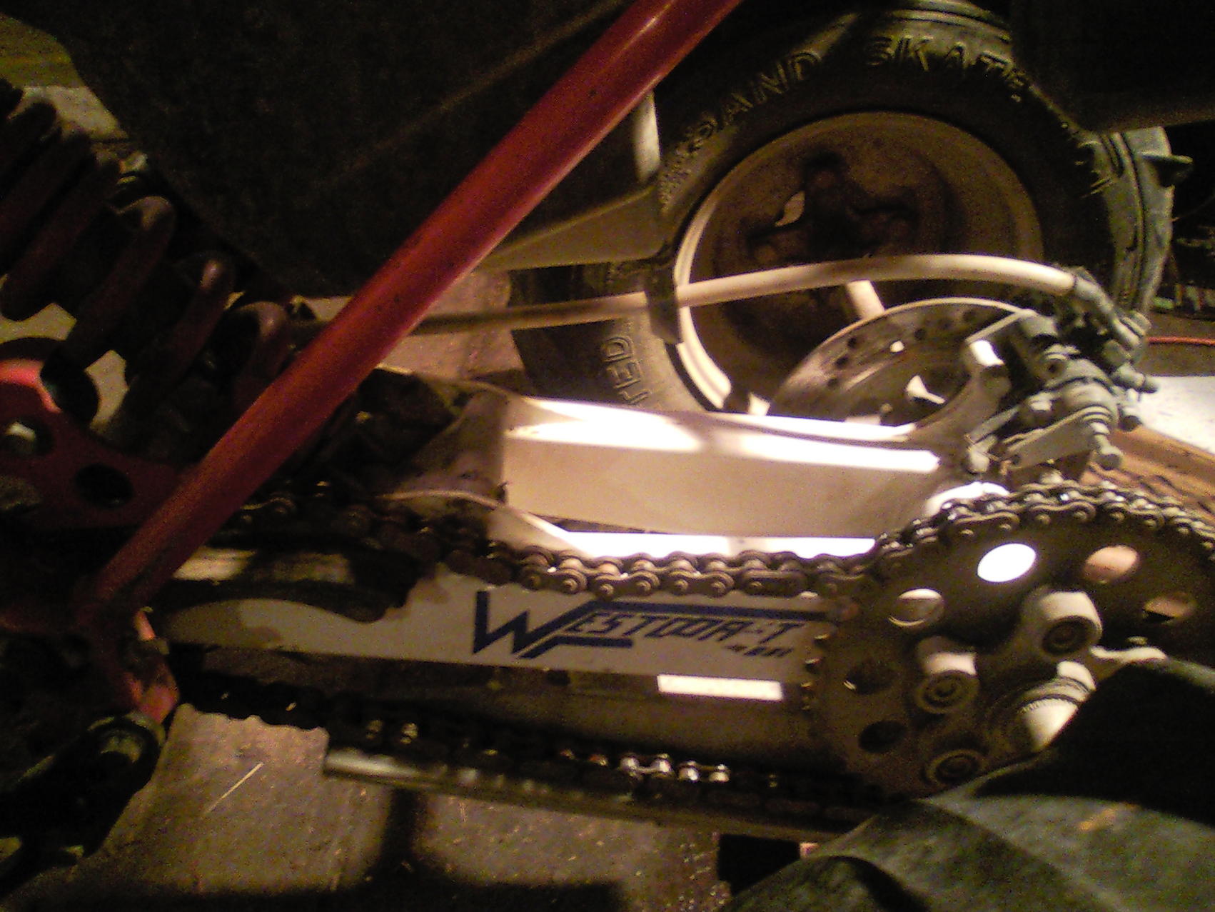 Here are some pics of the arm. like i said earlier its steel with a couple little scratches (its a swing arm duh) but thanks to the skid plate its still in nice condition. other than that white brothers sticker on the back lol. Called a shop about the tranny.. they said 5-7 hours at 75 an hour. i said have a nice day. crazy's..