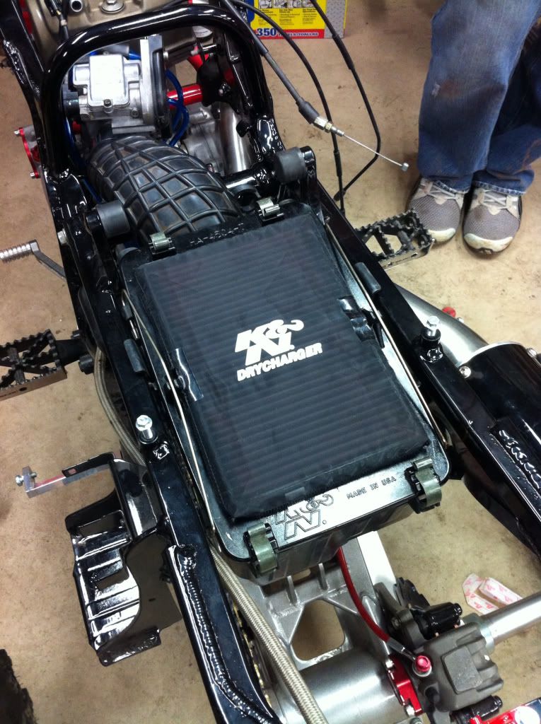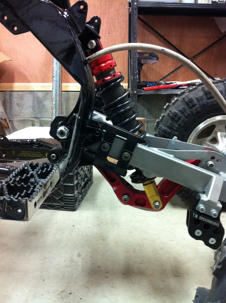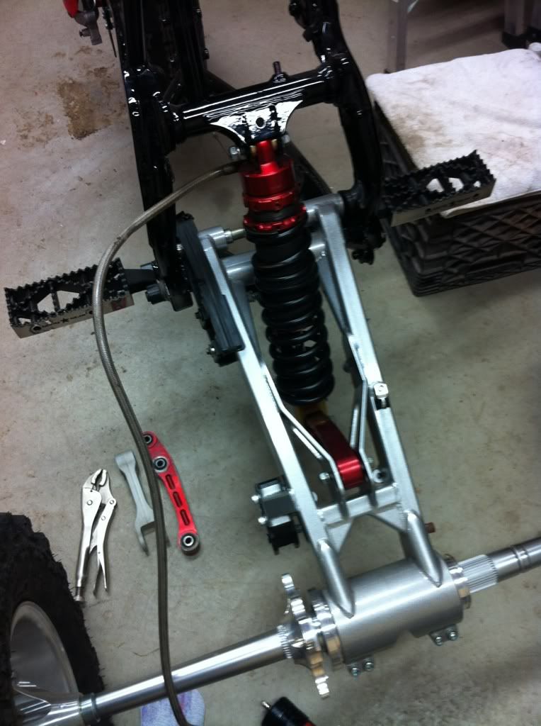 Quad motor with dirtbike valve cover, (other bike parts, TPC has all the info) - I forget. I can't keep it straight until I get ready to build one![]()