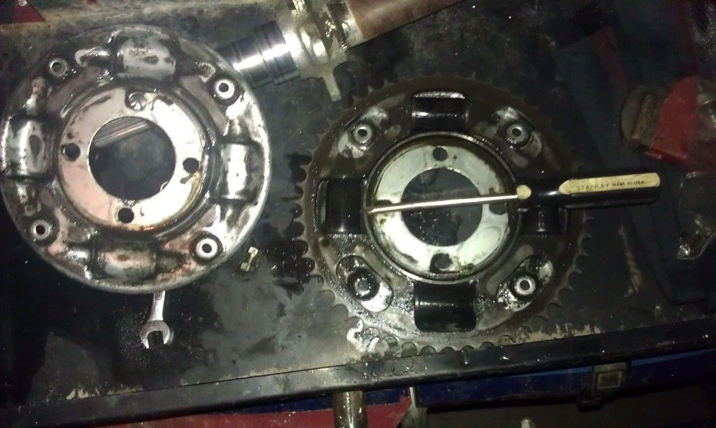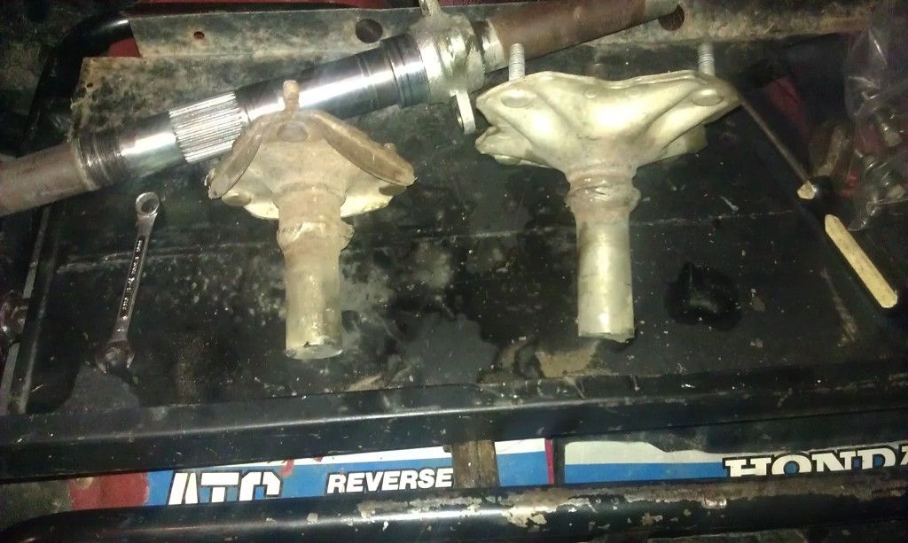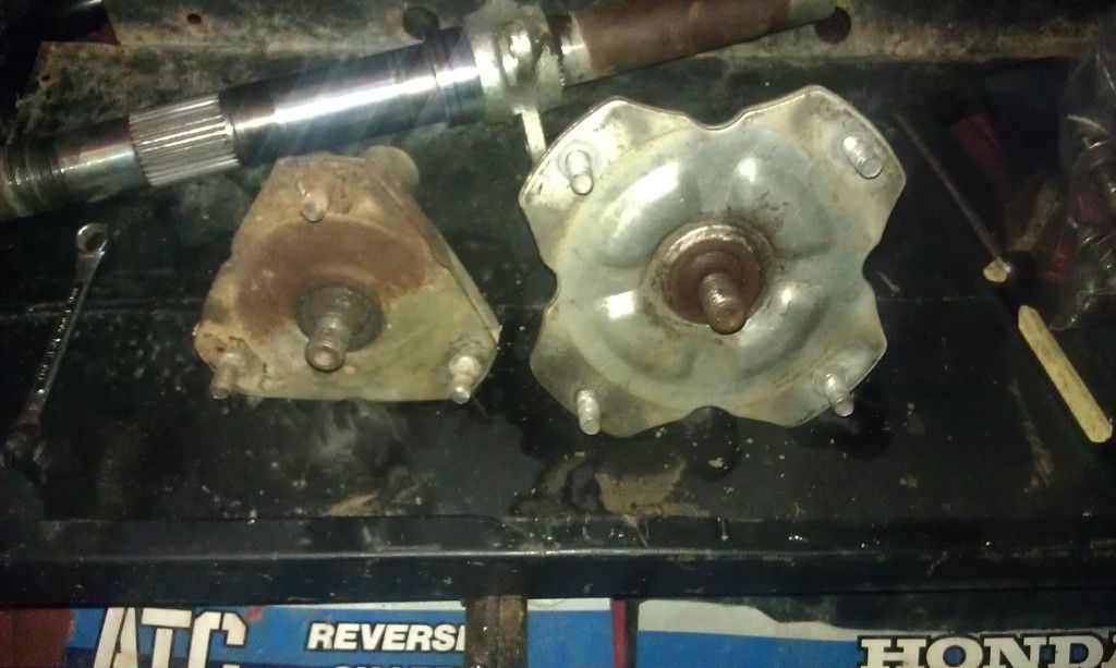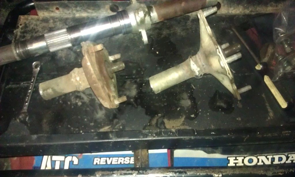 The funny part is seeing a 3 bolt on one side and a 4 bolt on the other welded on. Cutting them off is the best plan - they're usually welded on because the splines are stripped on axle and/or hubs.