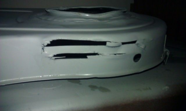 I just cut the area out, cut a piece of metal to fit, and welded it in. Must easier.