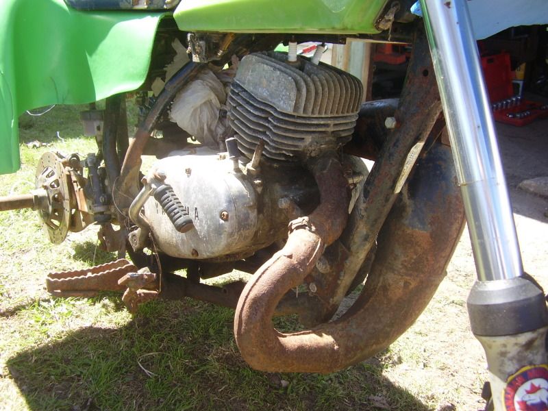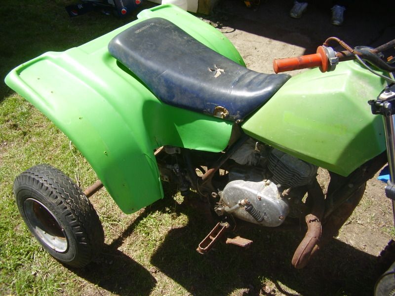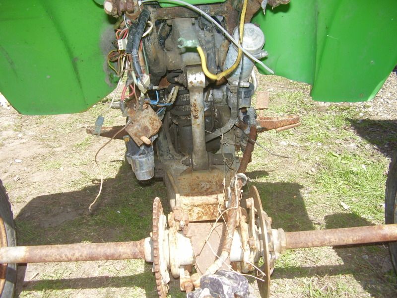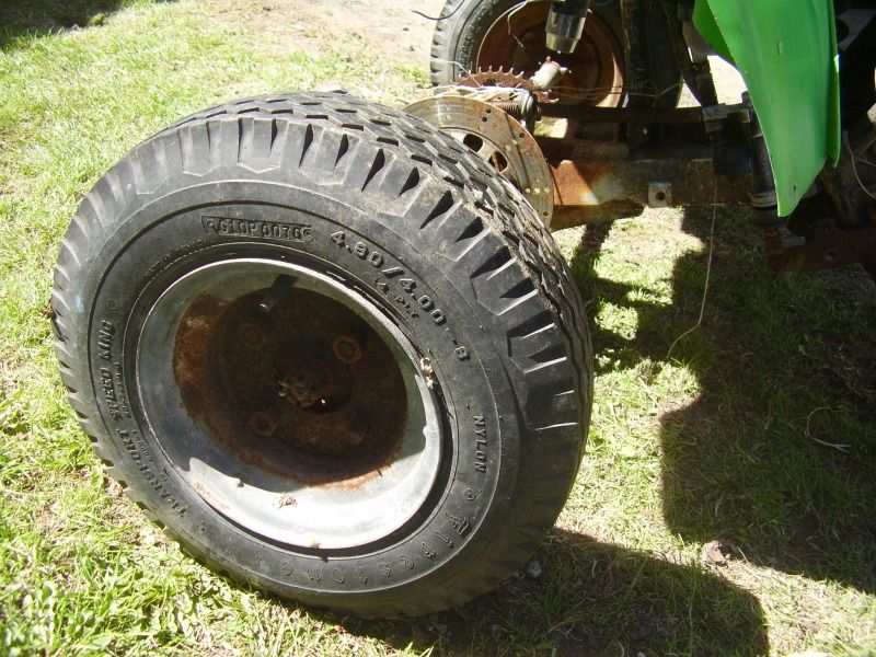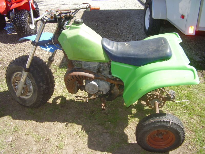 trailer tires for back tires, and someone crammed in a mid 80's yz125 in there. Doesnt run, the electrical is a cobble show.