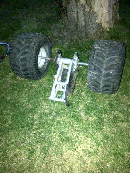 One last thing that I am tinkering with in my mind is a rear end disc brake conversion. Could I fabricate a spacer to bolt onto the inside of my right tire hub with a disc mounted to it? Then on the rear axle housing weld a bracket to bolt the 200x caliper to? Anyone try this or is this wishful thinking?