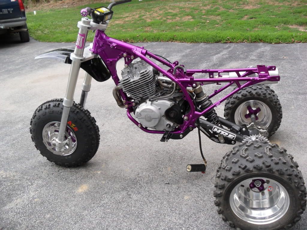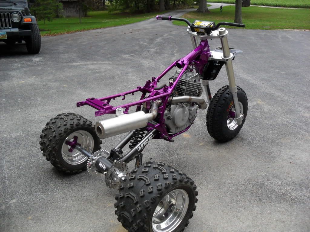 Hey XRider. I LOVE this machine - absolutely awesome. Just something to think about. If this is a "track only" bike - you'll need different rear wheels. You'll bend those in your first race without a doubt. I have mushroomed so many 10" wheels without reinforcement rings that I can not count them. Just a heads up - otherwise totally mint build!
