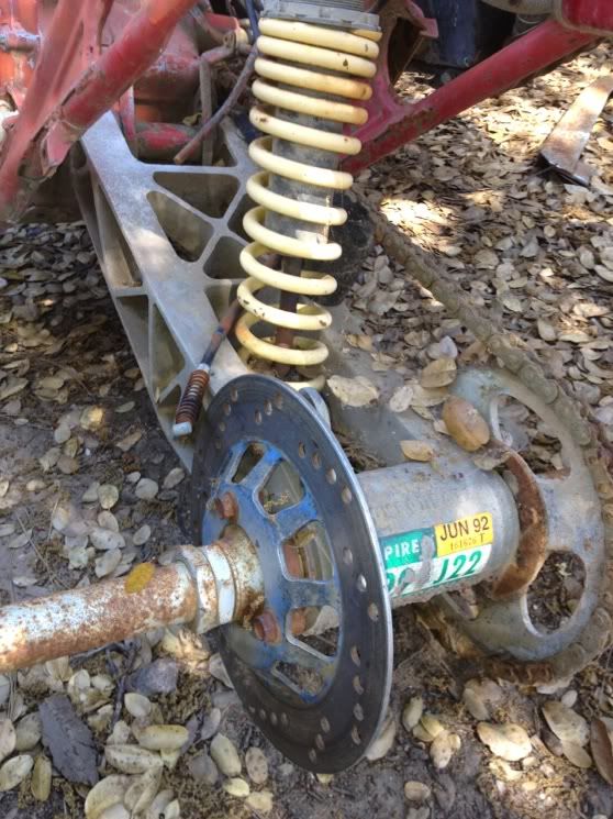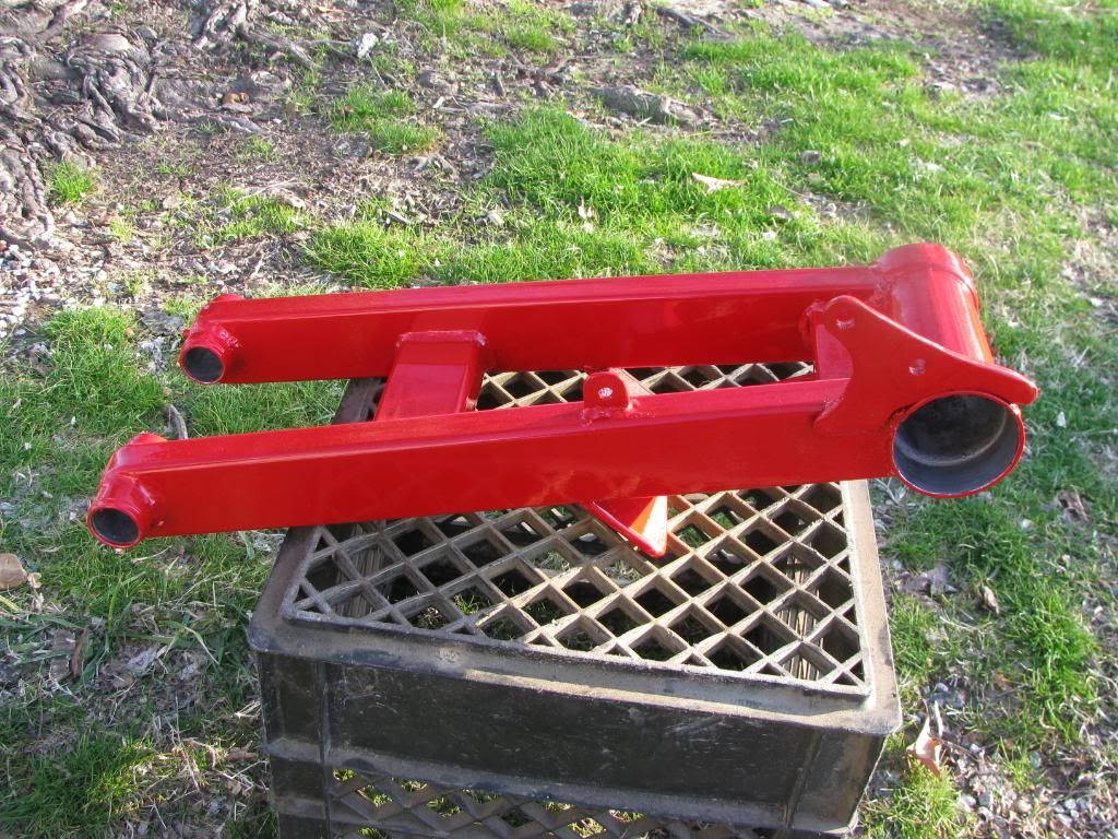 this looks very similar to an aftermarket suspension setup swingarm for a 185/200S, but it is longer and has a brake stay for an 82R caliper. it is +2 1/2 over stock 82R