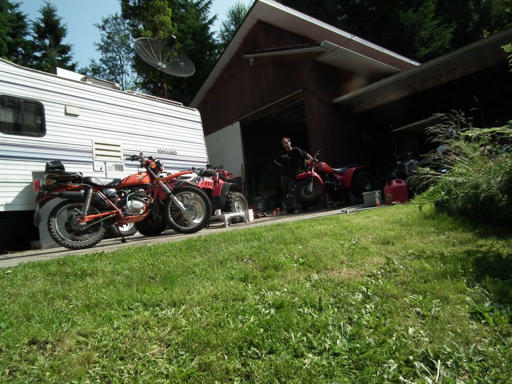 Hi, I got an old Honda enduro ('77 CT125) last fall because it was cheap and the logging road is couple hundred yards from my front door. My dad got in on it and go an '87 TRX350 also a good deal so we got the idea to snap up every cheap bike quad and trike we can get our hands on, It has snowballed on us in a good way. Our 2 bikes, a trashed TRX300FW, a (modified/rewired) chinese atv for the youngins, 3 complete z50 to be restored/refurbed every e22 type motor (clones and real Hondas), a ct70 clone, a trashed CRF70 clone, and finaly a trike my dads freind wanted us to get $800 for on "consignment".